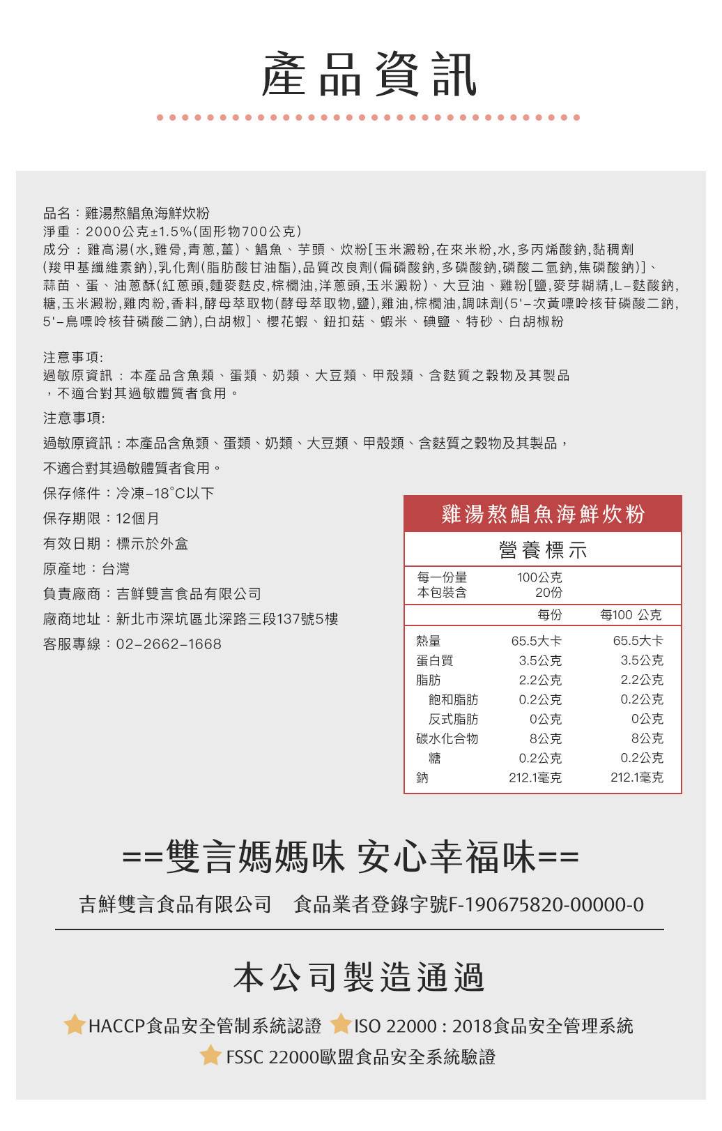 內容物:雞湯熬鯧魚海鮮2000g x1 / 小福袋 x1